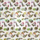 Eichhörnchen, die buntes Blätter und Blumen halten. Dieses Gewebe würde ein Spaß für einen Kinderraum sein.