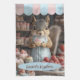 Ein reizvolles Bild zeigt ein bezauberndes Eichhörnchen mit einer gestreiften Schürze und einem rosa mattierten Kuchen. Das Eichhörnchen steht hinter einem Tisch, der mit einer Auswahl an schön dekorierten Kuchen, Makaronen und Erdbeeren gefüllt ist. Vor dem Hintergrund einer malerischen Bäckerei mit rosa und blauen Markisen steht das Set. Diese zauberhafte Szene vereint die Faszination eines talentierten Eichhörnchenbäckers in einer süßen und einladenden Umgebung.