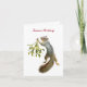 Ein süßes kleines Eichhörnchen hält einen Funken Misteloe auf dieser "Grüße Karte der Saison.