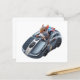 Das leistungsstarke Hybrid-PC-Maus-Auto für den Sport ist einfach gebremst und bereit für die Polizeispezialmission. Das Eichhörnchen, das als Offizier für die Mission ernannt wurde, steht zuversichtlich im Auto und ist voll einsatzbereit. Die Warnung lautet: "Stopp oder ich klicke auf dich!" AI-generiertes Bild.