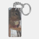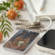 Ein Schlüsselanhänger mit zwei Fotos eines Eichhörnchens, das einen Apfel isst.