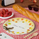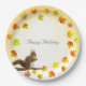 Niedliches Ferienhaus Eichhörnchen & Herbstlaube Erntedank Party Plate. Text kann personalisiert sein. Ideal für die Herbstsaison.