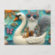 Eichhörnchen und Katze auf Floating Woolen Swan Fu Postkarte