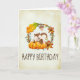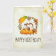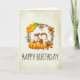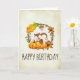 Eine Geburtstagskarte, perfekt für die Herbstsaison. Entworfen mit einem niedlichen Eichhörnchen, stehend hinter einigen orangefarbenen Kürbissen. Ein Laubkranz umgibt sie mit Eichenblättern, orangefarbenen Blume und anderen Blätter. TBackground ist ein Imitat Vintages Pergament in einer Cremefarbe, mit einem rauen, altersgerechten Aussehen. Innerhalb der Karte ist eine Nachricht, die Sie personalisieren können.