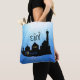 Schwarze Silhouette einer Moschee am blauen Himmel mit Sonne und Sonnenstrahlen, Grüße und Wünsche für Eid.