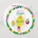 Niedliche Bräuche mit Ostereiern auf schönen Tulpen Muster Hintergrund mit Urlaubsstimmung.