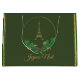 Schöne Geschenktasche mit dem Eiffelturm umgeben von einem immergrünen Weihnachtskranz, der perfekt für den Urlaub ist. Die Wörter "Joyeux Weihnachten" können für benutzerdefiniertes Design geändert werden
