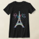 Ein mehrfarbiger Eiffel-Turm steht allein mit einem wunderlichen "Paris", das Confetti im Hintergrund regnet.
