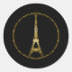 Eiffelturm Gold Glitzer Glitzern auf Black Runder Aufkleber