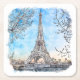 Eiffelturm Paris Frankreich Handgezeichnetes Wasse Rechteckiger Pappuntersetzer