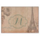 Turm-Shabby Chic-altes gealtertes Papierpergament-Anmerkungs-Anmerkungs-Buch-Monogramm-Initialen-personalisiertes kundenspezifisches Gewebe-Muster-Glasschneiden-Brett Paris Frankreich Eiffel
