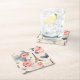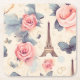 Ein Untersetzer aus Papier (robuste Pulpplatte) mit elegantem Muster. Rosa Rosen, blauen Schmetterlinge und ein Eiffelturm. Ein französisches Motivmuster.