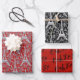 Eiffeltürme und Blume Rot und Schwarz Geschenkpapier Set