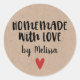 Ein personalisierter Aufkleber "hausgemacht mit Liebe" auf kraftfarbenem Hintergrund. Machen Sie es Ihren, indem Sie Ihren eigenen Namen hinzufügen. Eine hübsche Touch für alle Ihre handgefertigten Geschenke. Entworfen für Sie von BlackBerry Boulevard.