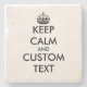 Eigene behalt Ruhe und weiter auf Kalkstein Untersetzer. Funny Typografy Template mit Krone. Spaß Geschenkidee für Freunde und Familie. Personalisieren Sie mit Ihrem eigenen humorvollen Zitat. Erhältlich in Marmor, Kalkstein, Travertin und Sandstein. Untersetzer aus dicken Steinen für Zuhause, Bar, Büro, Geburtstag, Hochzeit und vieles mehr.