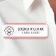 Dieses benutzerdefinierbare rosa Namensschild ist eine berufliche und vielseitige Wahl für jeden Arbeitsplatz. Es bietet ein übersichtliches Layout mit Platz für Ihren Namen, Titel und Ihr Firmenlogo.