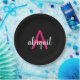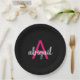 Eigener, rosa schwarzer Monogramm-Name Pappteller