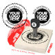 Erstellen Sie Ihr eigenes Personalisiertes Business Logo Große Rubber-Briefmarke, indem Sie Ihr Firmenlogo (rund um die besten Ergebnisse) einfach in doppelkreisige Farbrahmen einfügen, und zwei personalisierte Texte (Firmenname, Website, soziales Netzwerk, Rücksendeadresse, Kontaktinformationen oder nur eine niedliche Dankeschön-Nachricht für Ihre Kunden) in einem wunderschönen Vintagen SchreibmaschinenSchriftart. Verlass diesen grunge und stilvollen Schriftart oder wähle zwischen einer großen Sammlung von Stilen: dekorativ, Symbole, moderne und minimale Sans Serif für eine berufliche ästhetische, elegante handgeschriebene Drehbuch, kindisch und niedlich, klassisch chic Serif, und vieles mehr. Die großen Logo-Briefmarke aus Gummi sind eine tolle Geschenkidee für die Herstellung von hausgemachten Karton-Etiketten, Verpackungen und Verpackungen für handgefertigte Kunstwerke und vieles mehr. Das Logo für die Briefmarke aus Holz ist mit oder ohne Griff in kleinen, mittleren, großen und großen Größen erhältlich, und die Farbtöne sind in jeder Farbe. Keine Mindestbestellung.