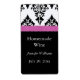 Ein hübsches Etikett zum Auftragen Ihrer speziellen Flasche hausgemachten Weins oder zum Gebrauch für jeden besondere Anlass. Es ist mit einem weißen und schwarzen Damast und einem schwarzen Boden ausgestattet. Ein hübsch rosa Band sitzt oben auf dem Etikett. Ihre individuellen Weininformationen gehen in die Mitte. Ideal für hausgemachte Weine oder Geschenkweine!