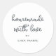 Rustikale und moderne personalisierte hausgemachte Liebe-Aufkleber verleihen stilvolle handgeschriebene Schrift-Kalligraphie auf weißem Hintergrund. Ideal für all Ihre hausgemachten Geschenke! Fügen Sie einfach Ihren Namen zum Label hinzu. Exklusiv für Sie von Happy Dolphin Studio entworfen!