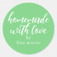 Rustikale und moderne personalisierte hausgemachte Liebe-Aufkleber verleihen stilvolle handgeschriebene Schrift-Kalligraphie auf sommerlich grünem Hintergrund. Ideal für all Ihre hausgemachten Geschenke! Fügen Sie einfach Ihren Namen zum Label hinzu. Exklusiv für Sie von Happy Dolphin Studio entworfen!