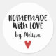 Ein personalisierter Aufkleber "hausgemacht mit Liebe". Machen Sie es Ihren, indem Sie Ihren eigenen Namen hinzufügen. Eine hübsche Touch für alle Ihre handgefertigten Geschenke. Entworfen für Sie von BlackBerry Boulevard.