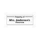 Dies ist eine Briefmarke, mit der Lehrer Bücher und andere Immobilien identifizieren können, die ihren Klassenzimmern gehören. In der obersten Zeile steht Property of. Die zweite Zeile bezieht sich auf den Namen des Lehrers. Im Endeffekt steht das Klassenzimmer. Der Schriftart ist kühn.