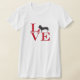 Für Hunde und Dackeln Liebhaber. Das Wort "LIEBE" ist rot und wird mit dem "O" durch ein Bild einer Dackel ersetzt. Es gibt auch eine Version für dunkelfarbene T-Shirts.