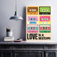Eighties Love is a Mixtape Cassette 80's Poster - Ne vous trompez pas, il y a certainement un art à faire un mixage impressionnant bande. Beaucoup comme l'art d'avoir une vie heureuse et épanouissante. Que vous soyez en train d'essayer de gagner le coeur de quelqu'un ou de simplement tourner vos amis vers d'excellentes airs, le mix tape était une affaire sérieuse à l'époque. Éclairez votre bureau ou votre espace de divertissement à la maison avec cette affiche de musique K7 multicolore extrêmement funky dans un style vintage. Cela ferait aussi le cadeau idéal pour cet ami, membre de la famille ou collègue de travail qui aime tout rétro. Cette affiche inspirante parle de la vie - après tout, l'amour est un mélange de bande. .