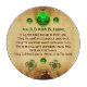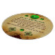 Elegantes, einzigartiges goldfarbenes Juwel mit smaragdfarbenem Edelstein und Kleeblatt ineinander mit einem antiken irischen Gebet für den Heiligen Paddy's Day (, St. Patty ). Antiquitätenklassische, braune Pergamenteffekte und sehr präzises Design, 3D-Modellierung und Darstellung von Bulgan Lumini (c). Teil der Serie Hyper Talismans. .Ein elegantes und klassisches Design mit einem alten Pergament.