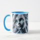 Ein Androidenmädchen mit perlenden blauen Augen. Tasse