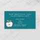 Berufliche Visitenkartenvorlage zum Thema Entental. Eine zeichnend / Illustration eines Apfels mit einer dicken roten Kontur und 2 schwarzen Samen in der Mitte und 2 grüne Blätter oben. Aquamariner Hintergrund.