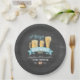 Ein Baby braut Babyduschpapier-Teller. Genießen Sie Essen und Leckereien in Ihrer handgearbeiteten Babydusche. Dieses Design zeichnet sich durch einen schwarzen Chalkboard-Hintergrund mit Biersteinen und Brillenbildern aus. Sofortige Download-Option verfügbar.