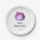 Ergänzt Ihr Girl Halloween Baby Duschpapier Teller mit einer Illustration eines rosa und lila Kessel. Illustriert und entworfen von Patricia Alvarez.