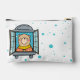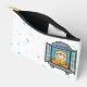 Eine bezaubernde Kosmetiktüte mit einem niedlichen Bären, der vor einem schneeweißen Hintergrund aus dem Fenster schaut. Der Bär trägt einen gemütlichen Pullover, perfekt für die Wintersaison. Die Tasche ist eine aquamarine Farbe mit gelbem Akzent am unteren Rand, was sie zu einem stilvollen und funktionalen Accessoire für die Aufbewahrung von Make-up, Pflegeprodukten oder anderen essenziellen Produkten macht. Diese Tasche bietet sowohl Praktik als auch Stil. Small SizeKleine Größe