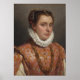 Dieses beeindruckende Portrait zeigt eine unbekannte Adelsfrau, die mit opulenten Kleidungsstücken verkleidet ist, die die Eleganz der Renaissance hervorrufen. Ihr Ausdruck, geprägt von einem mächtigen Blick, trotzt den konventionellen Darstellungen der Weiblichkeit aus der Zeit und lädt zur Betrachtung und Intrige ihrer Identität und Geschichte ein.