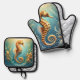 Ein elegantes Seepferd, das unter Wasser schwimmt Ofenhandschuh & Topflappen-Set