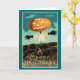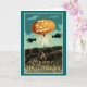 Vintage Halloween-Karte mit einem lächelnden Geist gegen einen Sternenhimmel.