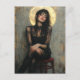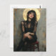 Eine wunderschöne Frau, die auf einem schwarzen Hocker sitzt und hinter ihrem goldenen Kreis einen goldenen Kreis hat