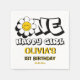 Ein fröhliches Mädchen Retro-Disy 1. Geburtstag Party mit Monogramm Servietten Vorlage, Mädchen's 1. Geburtstag Party personalisierte Servietten, Retro Groovy düsteren Party, Schwarz-weiße und gelbe Retro-Party Thema, Retro-Schachbretts, Hippie Geburtstagsparty personalisiert Dekor oder gedruckte Servietten