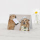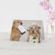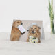 Dieser goldene Retriever verleiht einer verdienten Goldene Mutter eine Muttertagskarte und Blume.