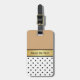 Fügen Sie Ihrem Gepäck eine einzigartige und stilvolle Touch mit diesem individuelle Name Kamel braunen polka Punkt Gepäckanhänger. Die Kamelbraun-Farbe bildet einen schönen Hintergrund zum klassischen Schwarz-Weiß-Polka-Dotmuster. Die Personalisierung Ihres Namens auf dem Tag macht es einfach, Ihr Gepäck schnell und einfach zu erkennen. Der Anhänger ist aus langlebigen Materialien gefertigt und mit einem robusten Band versehen, mit dem er fest an der Tasche behalten wird. Ob Sie geschäftlich oder privat unterwegs sind, mit diesem Gepäckanhänger können Sie Ihre Gepäcktasche in einem Koffermeer leicht erkennen. Das stilvolle Design dieses Gepäckanhängers wird Ihren Reisen eine Touch von Eleganz und Eleganz verleihen.