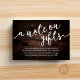 Feiern Sie den Beginn Ihrer Reise zusammen mit unserem eleganten rustikalen, modernen rustikalen Hütte dunkles Holz Hintergrund Thema, erstellt "A note on gifts" Hochzeitseinladung eingeschlossen Karte, Wunsch, bar. Jede Karte verbindet modernes Drehbuch mit romantischem Flair und ist so konzipiert, dass sie das Wesen Ihres besonderen Tages vermitteln kann. Diese Karte eignet sich perfekt für Paare, die einen einzigartigen Weg suchen, ihre Flitterwochen-Träume zu teilen. Sie lädt Ihre Lieben ein, zu unvergesslichen Erlebnissen beizutragen. Ob in einem luxuriösen Umschlag eingebettet oder zusammen mit Ihren Hochzeitseinladungen präsentiert, unsere Karte verleiht Ihrer Feier eine Touch von Zauber und verspricht wertvolle Erinnerungen, die ein Leben lang halten. Entworfen von TeeshaDerrick.