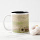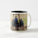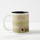 Ein junger Junge, der ein Traktorernten fährt Zweifarbige Tasse