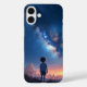 Ein Kind, das träumt, während es den Nachthimmel b iPhone 16 Plus Hülle