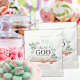 Senden Sie Ihren Gästen Zuhause mit einer Erinnerung dieser besonderen Feier! Diese charmante Wohlfühltüte mit sanften, leichten Grüntönen, sanften roten Akzenten und einer offenen Bibel ergänzt wunderbar eine wohltuende Babydusche. Ideal, um kleine Leckereien, Kerzen oder Pfannkuchen zu halten, ist es eine durchdachte Möglichkeit, Dankbarkeit und Segnungen mit den Lieben zu teilen.