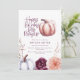 Blumen und Kürbis Herbst Geburtstagsparty Foto Einladung in lila und pfirsichfarben. Mit schöner Aquarellblüte, Blattwerk und Kürbisdesign. Ideal für Herbst/Herbst. Ideal zum Herbstgeburtstag.