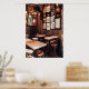 In einem kleinen Café, Tisch und Stühle und Dekoration an der Wand. Das ist eine künstlerische KI.