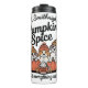 Diese hübsche Abbildung zeigt drei lächelnde Welpen, die Strick-Hüte tragen und hinter großen Kürbissen sitzen. Ein Welpe befindet sich neben einer Tasse heißer Kürbisspitzspülung. Im Text oben steht "Pumpkinspice" und unten steht "und alles Gute.." Diese Kunst hat ein charmantes, gemütliches und niedliches Herbstgefühl.
