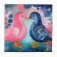"Ein Kuss in Federn" Glücklicher Valentinstag. Diese beiden Vögel feiern die Liebe und stehen nebeneinander, ihre Bindung verewigt sich in einer Mischung aus wirbelnden Farben von Rosa und Blues in zarten Texturen. Ein modernes, aber dennoch sentimentales Design, ideal für Valentinenkarten oder Keepsakes.